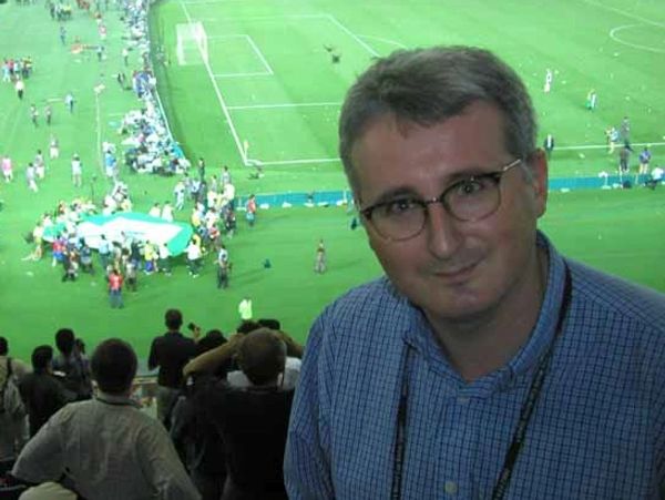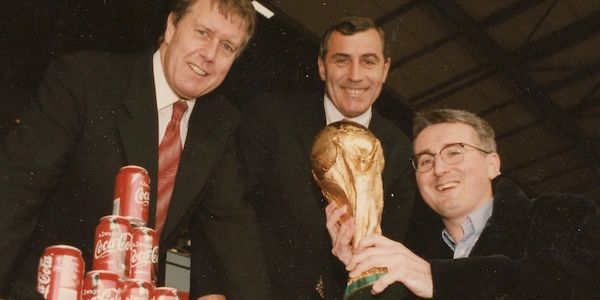 Chris Hunt with ex footballer/TV presenter Mark Bright at the Euro 2000 Final in Rotterdam